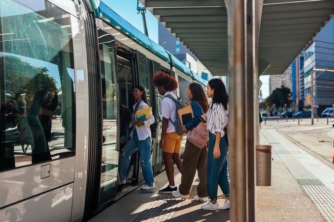 While there is no train station that stops right at the palace itself, you can take regional or commuter rail into Barcelona and then switch to metro or bus to reach the palace. For example, arriving at a main station like Plaça Catalunya or Sants Estació, then using metro line L3 (or a connecting line) to reach the closest metro stop, and walk from there.